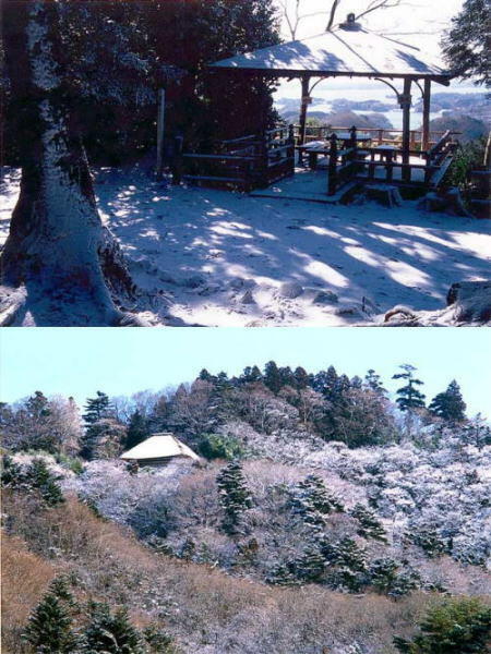 松島の北に位置し標高107メートルの富山は、仙石線陸前富山駅下車徒歩30分余りで表参道の登り口に着く。樅や杉の生え茂る静寂の中、石段を登ること20分、松島湾を北から望む展望台あずまやがある。隠れた松島のハイキングコースと言えよう。